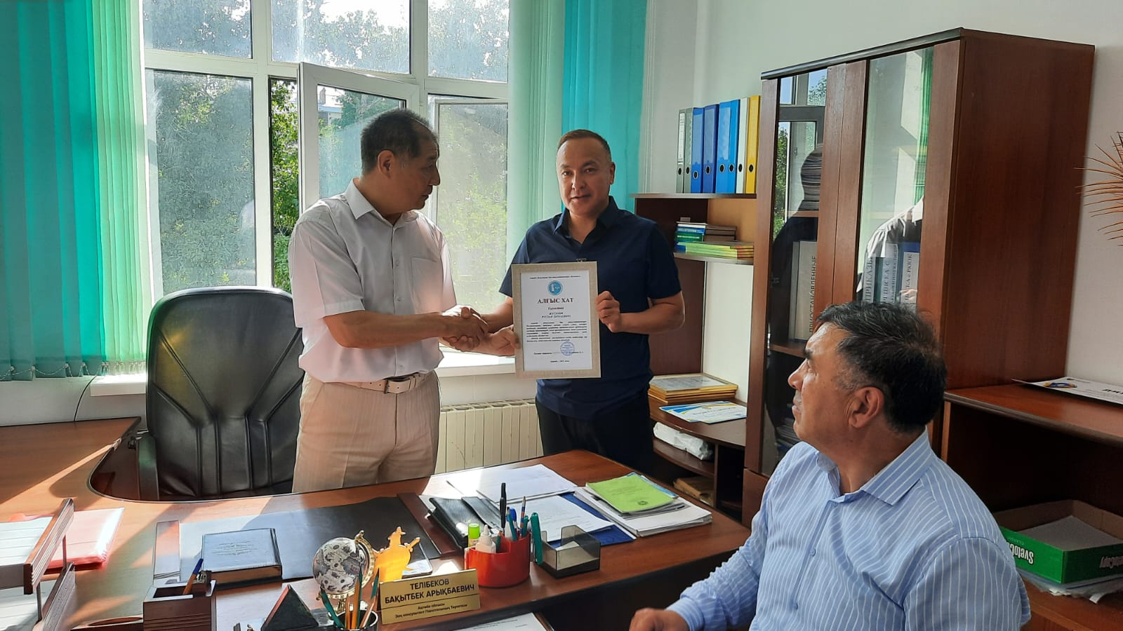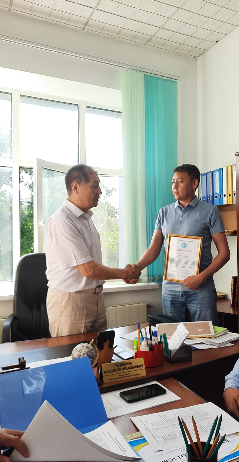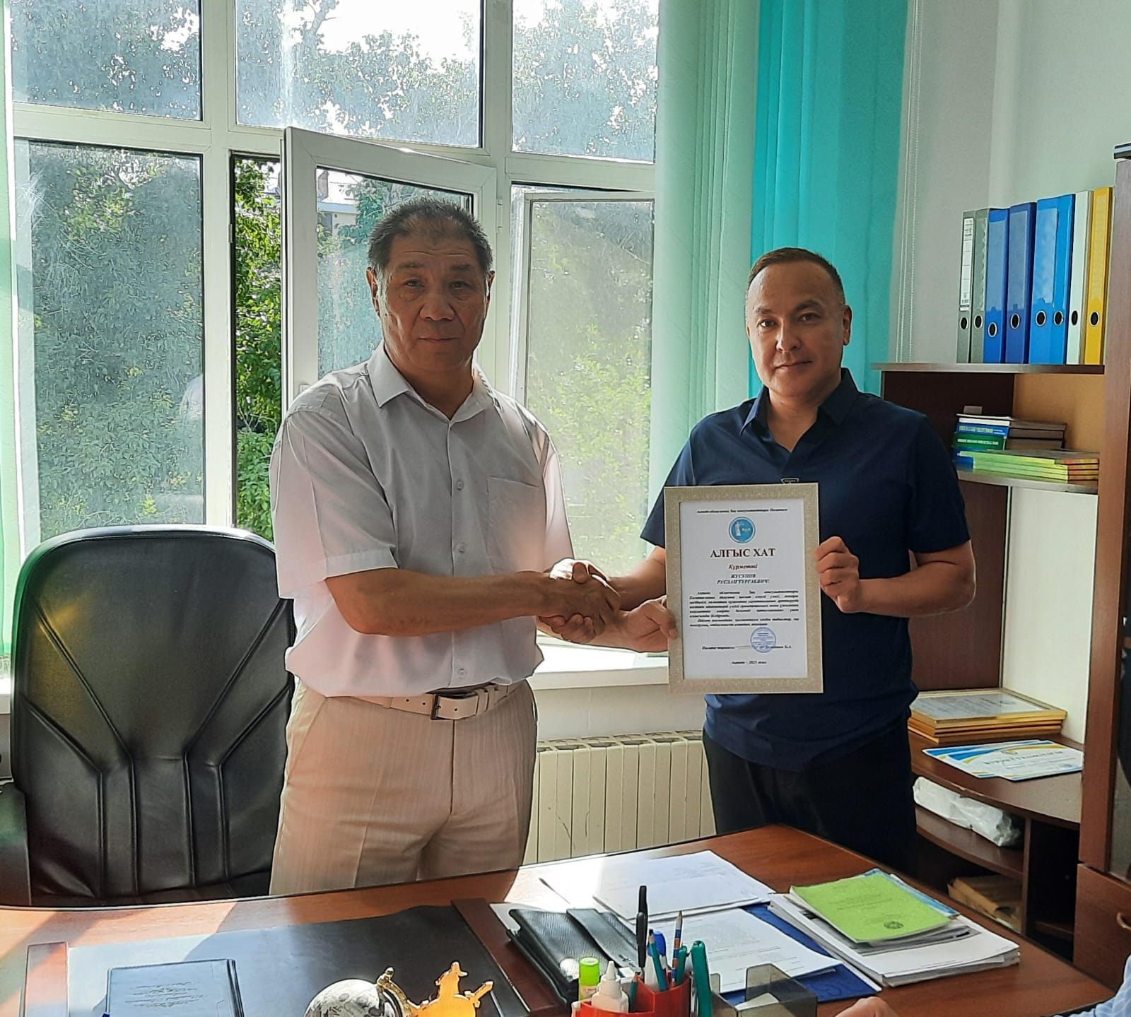 На заседании Правления ПЮК за активное участие в мероприятии, посвященному 80-летию со Дня Победы в Великов Отечественной Войне были вручены Благодарственные письма членам Палаты Жусупову Руслану Тургаевичу, Мукушеву Азидулле Муталлиевичу, Нурмагамбетову Ильясу Тургаевичу, Султанову Миргали Жанагалиеву и Таскимбаеву Алмату Аскарбековичу.
