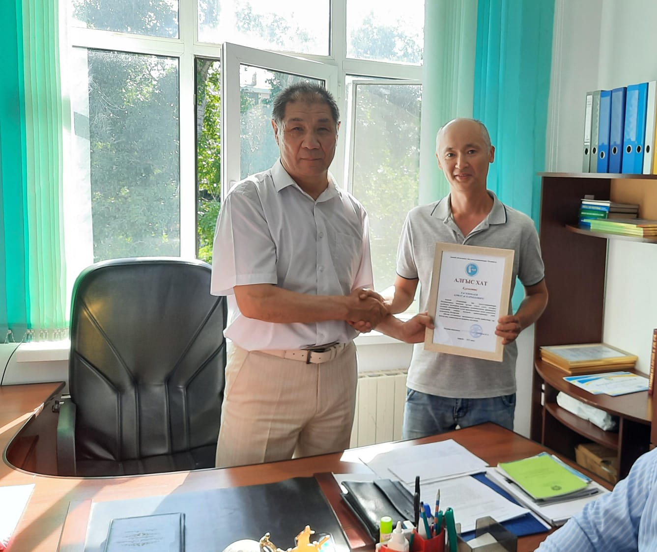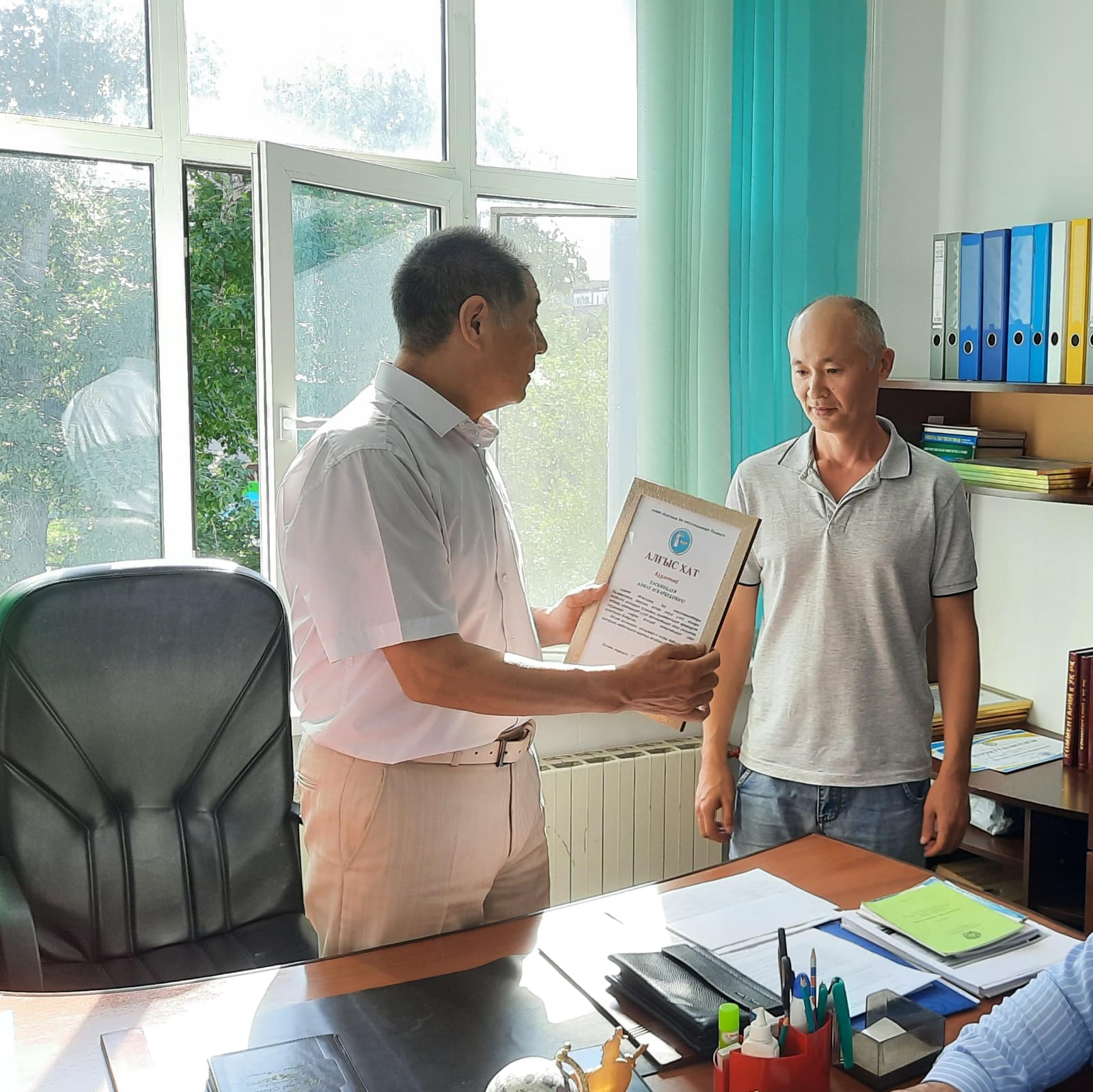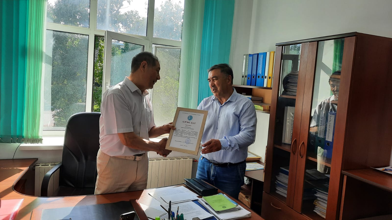На заседании Правления ПЮК за активное участие в мероприятии, посвященному 80-летию со Дня Победы в Великов Отечественной Войне были вручены Благодарственные письма членам Палаты Жусупову Руслану Тургаевичу, Мукушеву Азидулле Муталлиевичу, Нурмагамбетову Ильясу Тургаевичу, Султанову Миргали Жанагалиеву и Таскимбаеву Алмату Аскарбековичу.